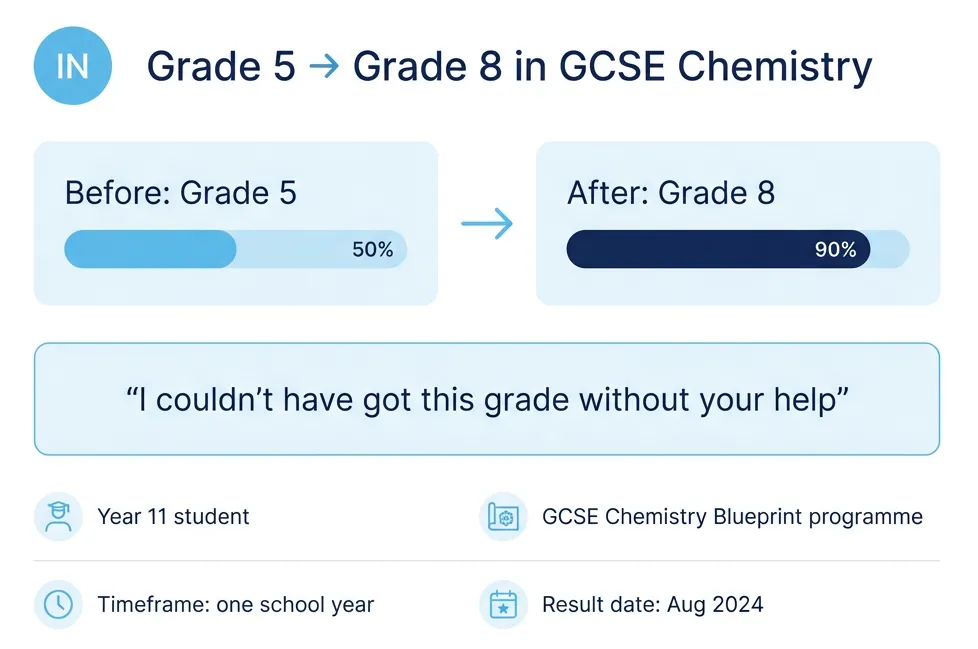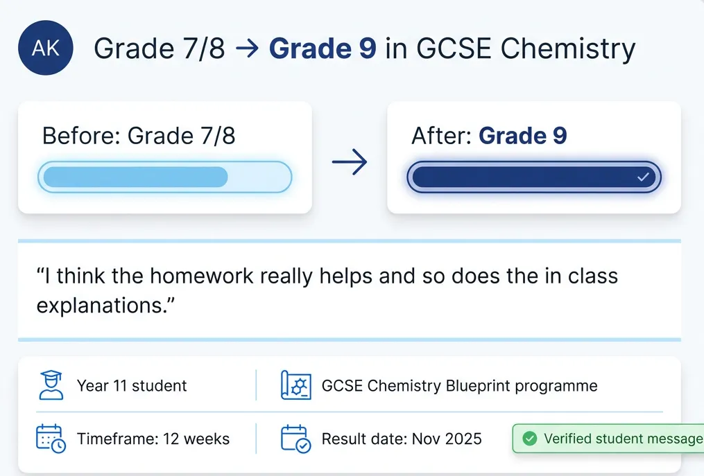 I help GCSE students achieve a grade 7+ in Chemistry, opening doors to elite sixth-forms and university courses like medicine or dentistry.